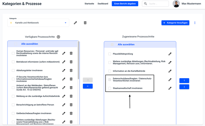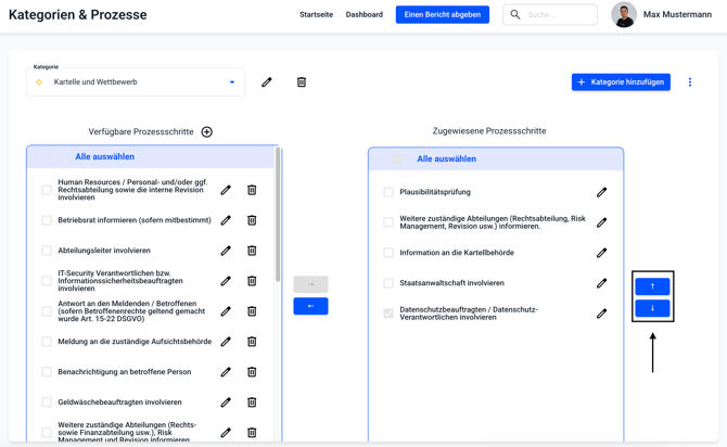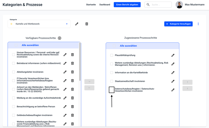 In der Übersicht kann mit einem Klick auf die Kategorie, die Kategorie ausgewählt werden, in welcher Prozessschritte sortiert werden sollen.