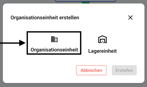 Es öffnet sich ein neuer Dialog. Wählen Sie jetzt das Symbol Organisationseinheit aus.
