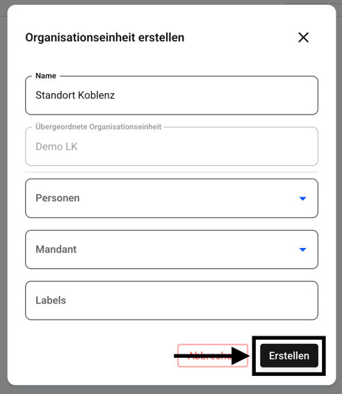 Wie lege ich eine weitere Organisationseinheit im Organisationsmanagement an