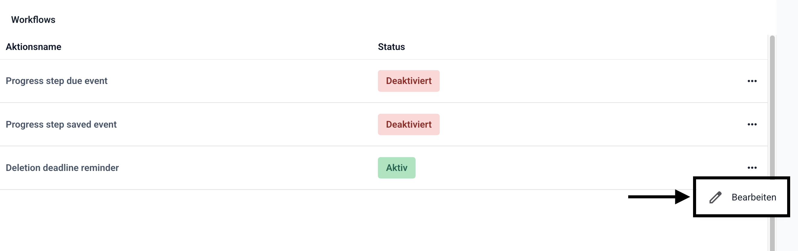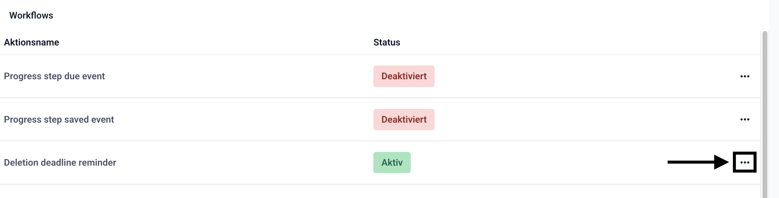 Klicken Sie jetzt auf die drei Punkte des Workflows, den Sie zurücksetzen möchten.